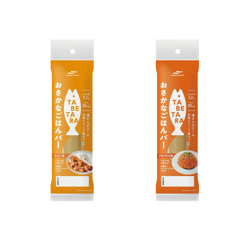 新シリーズ「おさかなごはんバー カレー味」(左)と「同チキンライス味」