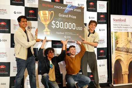 3日午後、米スタンフォード大で開かれた漁業の課題を解決する「スシ・ハッカソン」で優勝したチーム