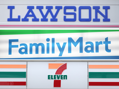 (写真上から)ローソン、ファミリーマート、セブンイレブンのロゴマーク