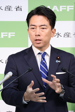 記者会見する小泉進次郎農林水産相=17日午前、農林水産省