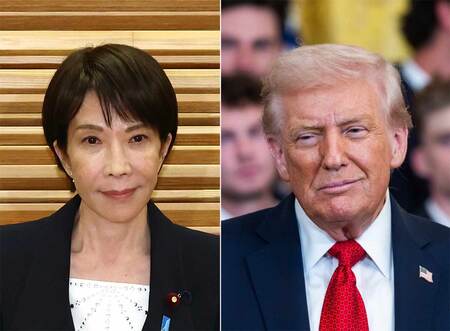 写真左から高市早苗首相(時事)とトランプ米大統領(EPA時事)