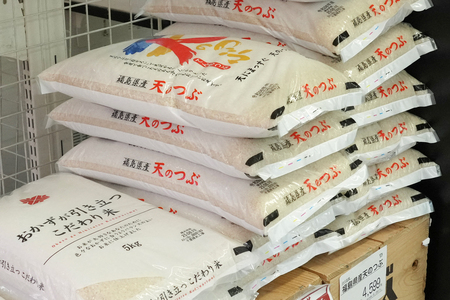 東京都内のスーパーに陳列されたコメ=資料(AFP時事)