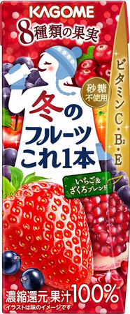 1日分に相当する果実を摂取できるカゴメの果汁入り飲料「冬のフルーツこれ一本 いちご&ざくろブレンド」(同社提供)