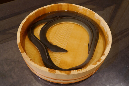 養殖メスウナギを使用したうな丼など=18日、名古屋市中区
