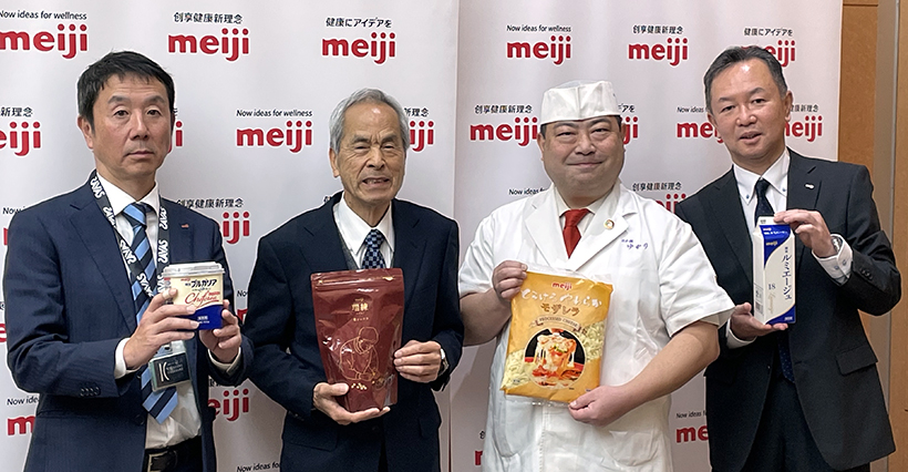 明治の業務用売上高は25年度1019億円見込み、30年目標1300億円へ上方修正も視野。乳とカカオの複合提案の可視化が好調要因。食感を定量評価できる「オーラルマップス」最新型をAPCに導入し、製菓製パン・食品加工向けにレシピ・メニュー提案を強化、業務用の成長を加速する。