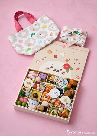 オンワードデジタルラボ(東京)は、人気キャラクターをあしらった「しろたんおせち」をリニューアルし、数量限定で発売。タテゴトアザラシをモチーフにした「しろたん」のイラスト付きかまぼこなど46品を詰め合わせた2~4人前で、従来の二段重から特大一段重に変更した。毎年変わる限定記念品はトートバッグと小風呂