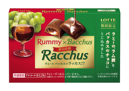 ロッテ(東京)は、自社の洋酒チョコレート「ラミー」と「バッカス」を組み合わせた「ラッカス」を期間限定で発売。外側はバッカス特有のなめらかなミルクチョコでコーティング。中には、ラミーに使われているラム酒にレーズンエキスが入ったシロップを加え、大人向けの香り豊かな味わいを目指したという。10粒入りで、