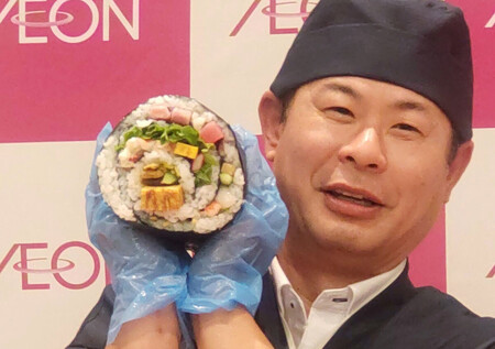2月3日の節分を控え、恒例の恵方巻き商戦が過熱している。物価高で消費者の節約志向は根強いが、特大サイズの海鮮巻きやギョーザ風の変わり種など、大手スーパーや百貨店は今年も品ぞろえに知恵を絞った。 顔が隠れるほどの大きさの恵方巻きを販売するのはイオンリテール。2026年にちなんでイクラやホタテなど2