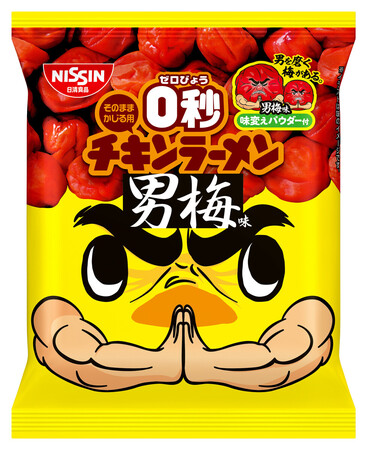 日清食品は、かじって食べる即席麺「0秒チキンラーメン」から「男梅味パウダー付」を発売。ノーベル製菓とコラボし、濃厚な梅干しの風味が人気の「男梅」粉末を付属した。ザクザクとした食感の麺にかけ、袋の口を絞って振ると梅干し味に変わる。希望小売価格は146円。(了) 【時事通信社】