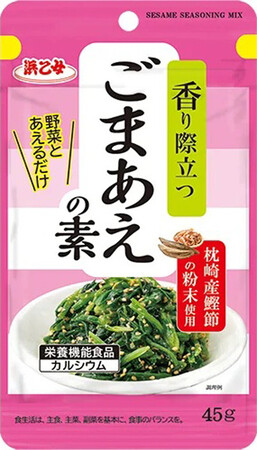 浜乙女(名古屋市)は、ホウレンソウやインゲン、小松菜などのゆでた野菜とあえるだけで、手軽に本格的な味のおかずが作れる「ごまあえの素(もと)」を発売。独自製法で香ばしく煎ったごまと、枕崎産のかつお節の粉末を使用し、コクとうま味が楽しめる。カルシウムを補える栄養機能食品。45グラム入りで、想定小売価格