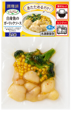 東洋水産のレンジで温めるだけで本格的な魚料理の味わいが楽しめる「ChoiFish 白身魚のガーリックソース」(同社提供)