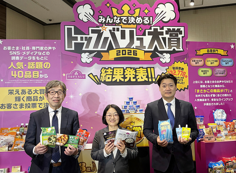 イオンのグループPB「トップバリュ」は、25年度の売上高が計画通り1兆2000億円に到達する見通しだ。24年度比では約9%増となる。価格訴求型のシリーズ「ベストプライス」がけん引役で、値入れ高を追求した売上げ拡大策は、利益率の改善にもつながっているという。(宮川耕平)