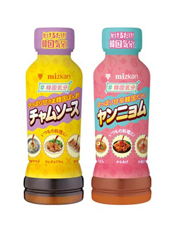 ミツカン(愛知県半田市)は、食べ続けたくなる辛味が特徴のたれ「韓国気分 ヤンニョム」と、甘酸っぱい「韓国気分 チャムソース」を関東や中部、近畿地方で発売。「ヤンニョム」は濃厚なコチュジャンにゴマ油や酢を加えた。「チャムソース」は、クセになる甘さとさっぱりとした後味が特徴だ。いずれも190ミリリット