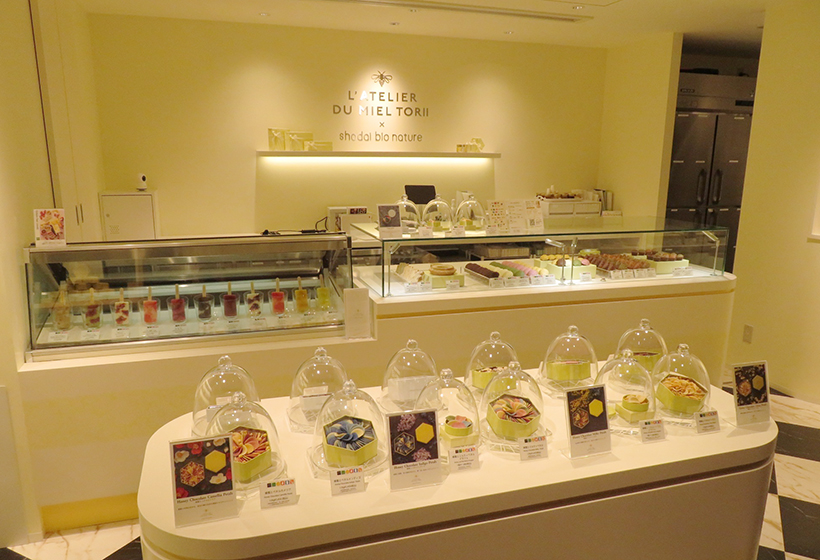 店内には蜂蜜を生かした上質なオーガニック洋菓子と蜂蜜を揃える