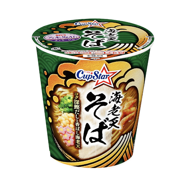 商品概要:「サッポロ一番 カップスター 和風」シリーズ新アイテム。おいしさを強化、お店で食べるような上質感や和風感の強い味。麺は、挽きぐるみそば粉に粗挽きのそば殻を配合。やや幅広で適度な歯応えのあるそば。つゆは、鰹節と雑節、昆布のうまみに、濃口醤油を合わせた。みりんの甘み、ユズ七味唐辛子の風味を加えた、奥深い味わいのそばつゆ。具材は、エビ天、あげ玉、ネギ、花形かまぼこ。