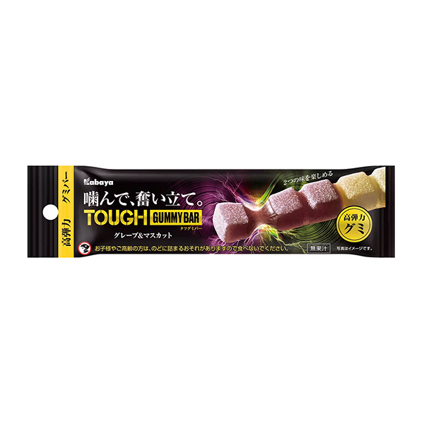 商品概要:新「タフグミ BAR」シリーズ。高弾力、サワーパウダーによる刺激とおいしさはそのままに、今までにない“かみちぎる”感覚を味わえるバー形状のグミ。片手で食べやすい形状のため、仕事や家事、勉強、ゲームの合間などで空腹を満たすことができ、食事の時間が惜しいながらも、頑張りたい、集中したい人をサポートする。今までグミを喫食していなかったグミノンユーザーにも、新しい形でグミのおいしさを提案する。1本の重量は40g(1製品当たり1本入り)で、ガツンと腹を満たす食べ応え。最後まで