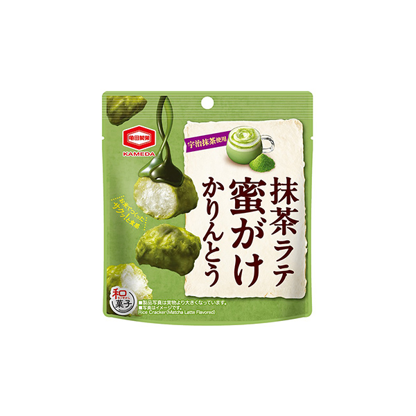 商品概要:「蜜がけかりんとう」シリーズ新アイテム。軽い食感の生地に宇治抹茶を使用した抹茶ラテみつをかけてコク深い甘さに仕上げた、コメでできたかりんとう。抹茶ラテみつを重ねがけすることで、口に入れた瞬間に抹茶の香りとミルクのコクが広がる。ノンフライ製法のため、濃厚でありながらも軽い食感で、ついつい手が止まらなくなる味。仕事や家事の合間のほっと一息つきたい時に、好きな飲み物と一緒に楽しめる。