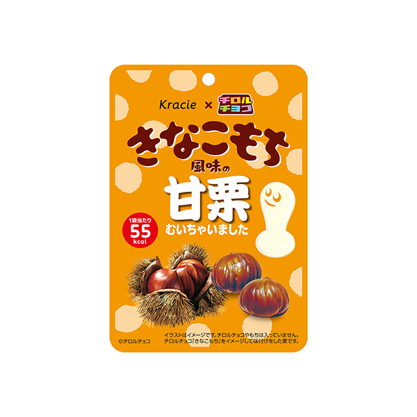 商品概要:「甘栗むいちゃいました」シリーズ新アイテム。チロルチョコの「きなこもち」とのコラボレーション。香ばしいきな粉の風味としっとりとした甘栗の絶妙なバランスが楽しめる、和スイーツのような新感覚のむき栗。ほんのり甘く、香ばしいきな粉の風味が口いっぱいに広がるむき栗は、通常の栗とはひと味違う満足感。特選A級有機栽培栗を使用し、国内でレトルト加工することで、素材のよさを生かしながら、「チロルチョコ <きなこもち>」をイメージした味付けに仕上げた。甘くて腹持ちがよく、少量でも満足