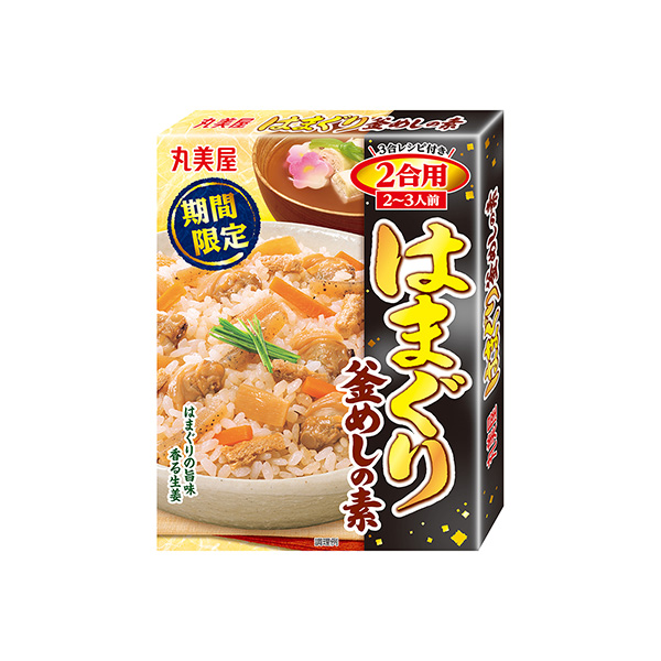 商品概要:「期間限定 釜めしの素」シリーズ新アイテム。うまみたっぷりのハマグリに、ニンジン、タケノコ、コンニャク、油揚げを組み合わせた。ほんのりショウガが利いた、甘辛醤油味に仕上げた。季節感、プチぜいたく感を味わえる。といだコメと一緒に炊飯器に入れて炊くだけで簡単に旬の食材を楽しめる釜飯が出来上がる。
