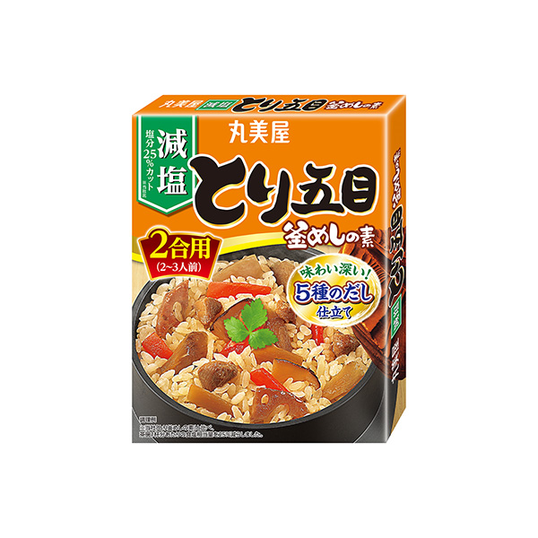 商品概要:「釜めしの素」シリーズ新アイテム。といだコメと一緒に炊飯器に入れて炊くだけで簡単に釜飯を楽しめる釜飯の素。定番の「とり釜めしの素」から塩分を25%減らした、健康志向の高まりに応えた品。鰹節、いりこ、あご、昆布、アジの5種のだしをしっかりと利かせることで、減塩でも満足できる味わいを実現。具材は、鶏肉、ニンジン、ゴボウ、タケノコ、レンコン、椎茸を組み合わせた。