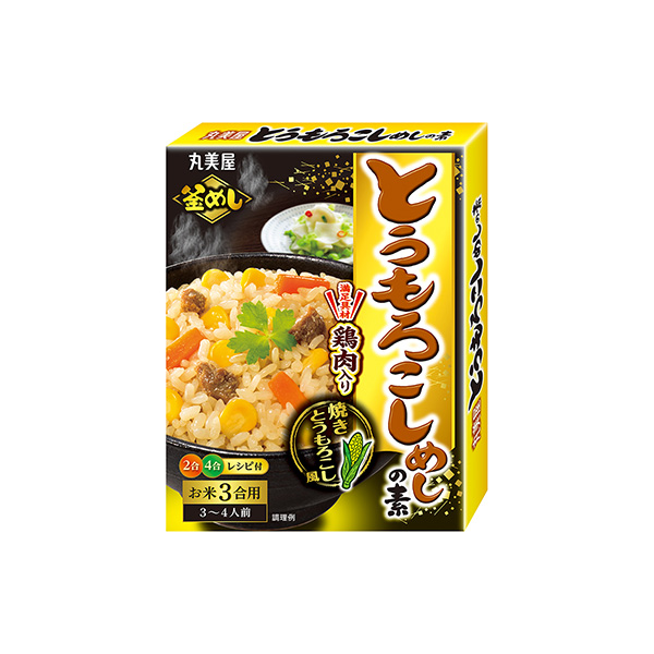 商品概要:「炊き込みめし」シリーズ新アイテム。トウモロコシと、鶏肉、ニンジンを組み合わせた炊き込みご飯の素。焼きトウモロコシの味わいをイメージし、子どもも喜ぶ香ばしい醤油の味付けに仕上げた。鶏肉入りなので、満足感のある炊き込みご飯が完成する。子どもが喜ぶ甘めの味付けで、子育て世帯から好評のシリーズ。