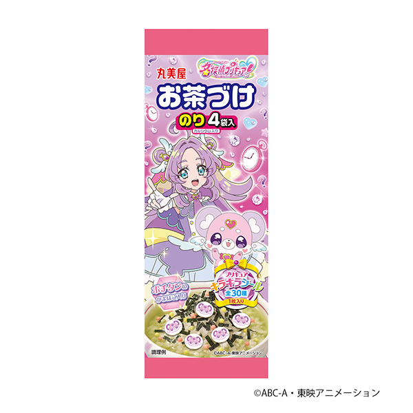 商品概要:新「名探偵プリキュア!」シリーズ。<のり>4袋が入った茶漬け。番組のキャラクター、ポチタンの絵柄のかまぼこと3色あられが入っている。カルシウム入り。オリジナルシール1枚入り(全30種)。2026年の新プリキュア、名探偵プリキュア!シリーズを起用。