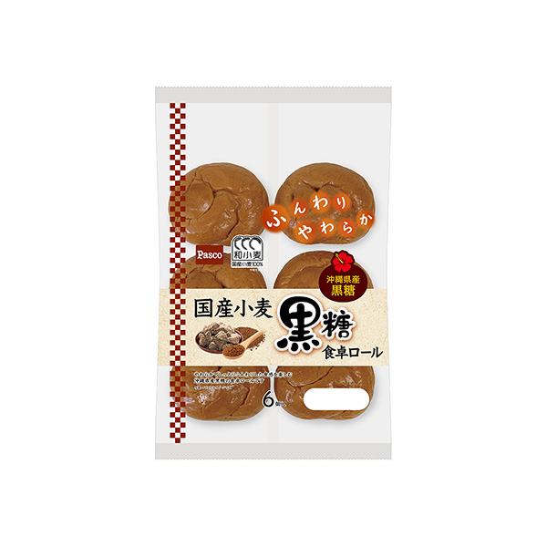 商品概要:「国産小麦」シリーズ商品。国産小麦の小麦粉を100%使用(手粉を除く)に配合を変更。柔らかでしっとりふんわりした食感を楽しむ、沖縄県産黒糖の食卓ロール。好みでレンジやトーストで温めると、黒糖の風味がさらに引き立つ。