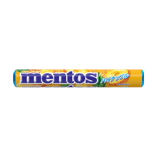 商品概要:「メントス」シリーズ新アイテム。酸味と甘みがクセになるパイナップルフレーバー。かんだ瞬間、カリッとした食感とともに、暑い日に好適な酸味と甘みが広がる。ジューシーなパイナップルフレーバーで気分をリフレッシュ、ひらめきとワクワクする心が目覚める。