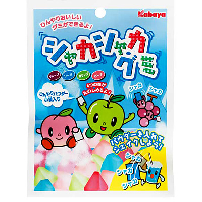 ◆商品特徴=グミ。リニューアル。グレープ、青リンゴ、ピーチ、ソーダの味がアソートされたカラフルな氷型グミ。別添の“ひんやりパウダー”を振りかけ、シャカシャカ振ると味の変化を楽しめる。パッケージは持ち運びに便利なチャック付き。