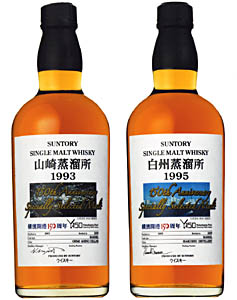 A=〈山崎蒸溜所1993バーレル〉みなとみらいの夜景の航空写真をラベルに配した。1993年に山崎蒸溜所で蒸留された。バニラを連想させるほのかな甘み、芳しい香りが特徴。