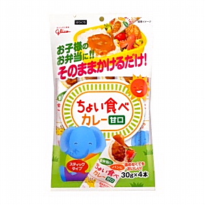 A=〈カレー 甘口〉裏ごし野菜と果実に牛ひき肉を加えて仕上げたマイルドなカレー。子どもの弁当に好適。ターゲット層にフィットするかわいいイラストを採用。
