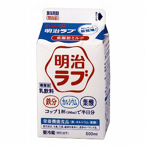 A=「明治ラブ」コップ1杯(200ml)で半日分の鉄分(3.8mg)、カルシウム(350mg)、葉酸(100μg)を摂取できる機能性乳飲料。コクがあり、飲みやすい味わい。単身者や高齢者にも、飲み残しを気にせず購入できる容量。