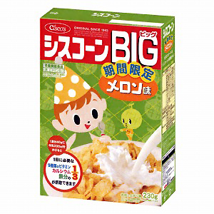◆商品特徴=栄養機能食品(鉄、ビタミンB1)。シリアル類。シリーズ商品。期間限定。冷たい牛乳と相性抜群なメロン味のコーンフレーク。メロン果汁を使用し、さっぱりした甘さに仕上げた、夏らしい新フレーバー。1食分40gに200mlの牛乳をかけて食べると、1日に必要とされている9種類のビタミン、鉄、カルシウムの3分の1以上が摂取できる。