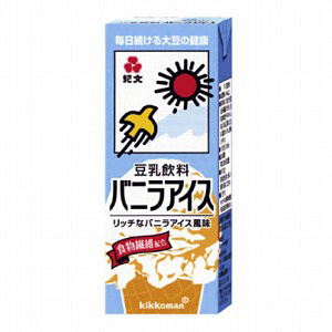 A=〈バニラアイス〉乳原料を使用せずバニラアイス風味を再現した豆乳飲料。1本当たり14kcalで、食物繊維を4.0g含有。