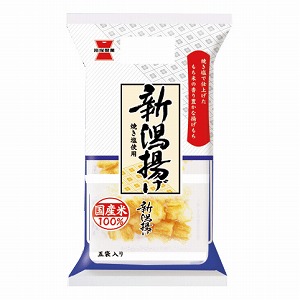 A=「新潟揚げ」低温でじっくり揚げて、ザクッとした心地よい食感に仕上げた揚げおかき。もち米の香りを引き出す焼塩で味付けた。