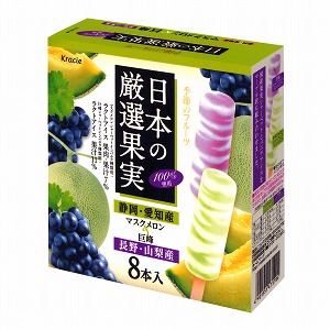◆商品特徴=アイスクリーム類。フルーツシャーベットとバニラアイスを、マーブル状に組み合わせた。シャーベットには、静岡県産、愛知県産のマスクメロン、長野県産、山梨県産の巨峰の果汁を使用。それぞれのシャーベットとバニラアイスをミックスした、2種類のアソートタイプ。子どもから大人まで、家族や友人と一緒に楽しめるマルチパック。