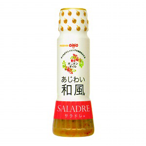 A=〈あじわい和風〉ロースト風味のオニオンオイルとすりおろしオニオンでまろやかなドレッシング。オリーブや赤ピーマンが入った和風タイプ。