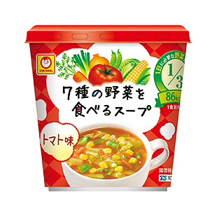 ◆商品特徴=調理品。リニューアル。7種類の野菜を使用した濃厚な味わいのトマトスープ。チキンベースのトマトスープを香辛料で味を調えた、まろやかでクリーミーな味わい。具材は、キャベツ、玉ネギ、ネギ、サヤエンドウ、ニンジン、コーン。フリーズドライ製法で、野菜のおいしさを生かした。1杯で1日に必要な野菜の3分の1(約117g)を摂取可能。