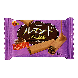 A=「ルマンド〈プレミアム〉」薄く焼き上げたクレープ生地にチョコレートを流し込みながら包み上げ、チョコレートでコーティングした。クレープのサクサク感と濃厚なチョコレート感が味わえる。