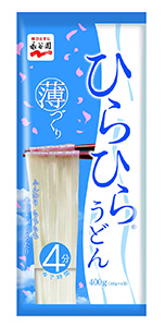 ◆商品特徴=麺類。薄さと滑らかな口当たりにこだわった乾麺。そうめんほどの薄さ(1mm)の“ヒラヒラ、ツルツル”した、滑らかな口当たりのうどん。薄くても、“ふんわり、モチモチ”した新しい食感が楽しめる。4分ゆでた後、冷水で冷やして食べる。