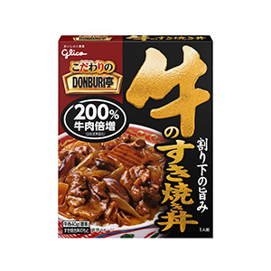 A=〈牛のすき焼き丼〉は、「同〈すき焼き丼〉」比200%の牛肉でボリュームのあるすき焼き丼。大きいカットに変更した牛肉に甘辛い割り下がよく絡み、ご飯によく合う。