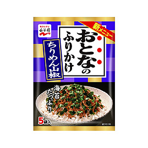 ◆商品特徴=調理品。シリーズ新アイテム。こだわりの海苔をたっぷりと使ったふりかけ。分包タイプで、いつでも開けたてのおいしさ。海苔、ちりめんじゃこ、ごま入り。同シリーズは、“子どもだけでなく大人も楽しめる、おいしいふりかけ”をコンセプトに、メニュー、味にこだわり89年10月に発売した。
