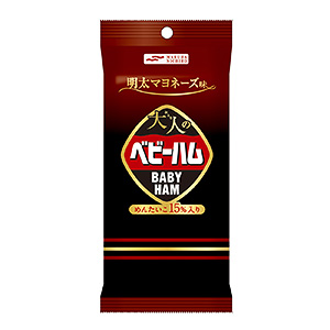 ◆商品特徴=加工肉類。九州のソウルフード“ベビーハム”と福岡の名産品“明太子”とのコラボ。明太子の辛みが程よく効いた、大人向けのベビーハム。焼いて食べるとマヨネーズの焼目が香ばしく、明太子の辛みと相まって、つまみに好適。明太子15%入り。