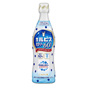 ◆商品特徴=乳関連飲料。シリーズ新アイテム。専用に開発した発酵技術で、糖質を60%カットしながらも「カルピス」と同じ量の発酵乳を配合し、「カルピス」ならではの味わいを実現した。カロリーオフでもしっかりしたコクと、甘酸っぱいおいしさが楽しめる。希釈タイプ。炭酸水や牛乳で割ってもおいしく飲める。