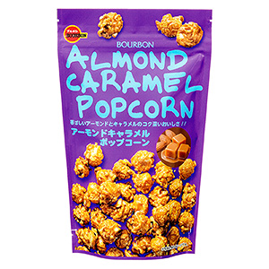 A=「アーモンドキャラメルポップコーン」キャラメルの中にアーモンドペーストを練り込み、ポップコーン表面にカットしたアーモンドを散りばめた。2つの食感、味わいが楽しめる。
