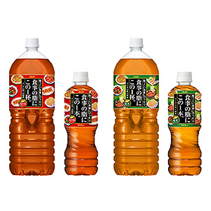 A=「アサヒ 食事の脂にこの1杯(本)。」茶葉を増量し、さらにおいしさが楽しめる味になった。プーアル茶に烏龍茶をブレンドした。