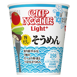 ◆商品特徴=麺類。シリーズ第3弾。表面のつるみとしなやかな麺質のそうめん。レタス約2個分相当の食物繊維を練り込んだ。ホット調理では湯伸びしにくく、アイス調理ではしっかりとしたコシのある食感が楽しめる。鶏をベースに、椎茸のだしとショウガの風味を利かせた和風スープ。具材は、オクラ、トマト、黄パプリカ、椎茸、ショウガ、白ネギ、キャベツ。麺、スープ、具材をすべて食べても198kcal。