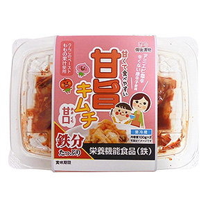 ◆商品特徴=健康食品。鉄の栄養機能食品。1パック(100g)で1日当たり必要な鉄分の30%を摂取できる。鉄分不足で悩む人が多い女性や成長期の子どもでも手軽に鉄分を取れる。リンゴピューレや桃の果汁、辛さ控えめな唐辛子を使用しているため、辛いキムチが苦手な子どもや女性にも食べやすく甘くてうまみのあるキムチ。