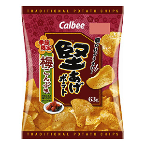 ◆商品特徴=菓子。シリーズ新アイテム。期間限定。厚切りのジャガイモを低温でじっくりフライする直火釜揚げ製法で作り出された硬い食感。かむほどにジャガイモの味わいが感じられるポテトチップス。梅の香りと程よい酸味に、まろやかな昆布のうまみが後引くおいしさ。和歌山県産梅100%(梅肉パウダー)を使用。