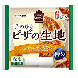 ◆商品特徴=粉類。1枚でも満足感のある、厚めタイプのピザ生地。生地の厚さは約3.4mm。もち粉とベーキングパウダーを配合し、ふっくら&もちもちの食感。プレーン生地で、好みの具、ソース、チーズなどをのせ、オーブントースターで7~8分焼き上げるだけで完成。朝食やランチに好適。